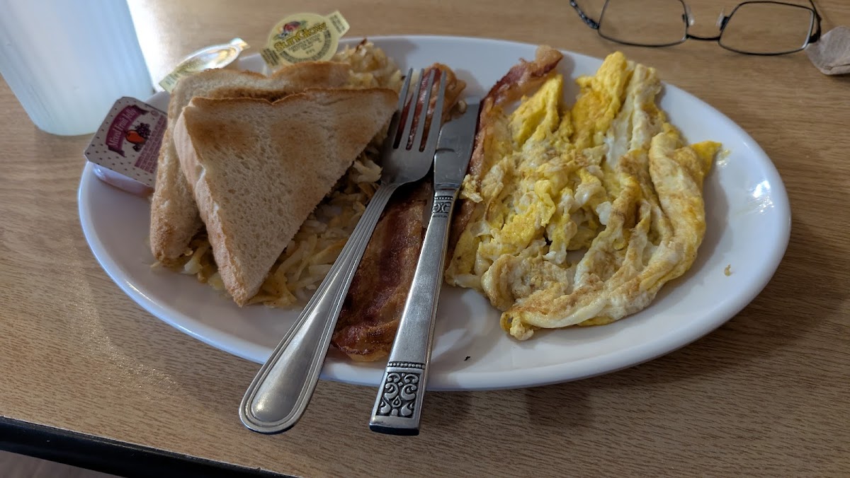 Excellent food. Everything thing I have tried has been very good. Burger, I recommend you eat in. Burger was hot and good, fries still had steam coming off them. I tried breakfast today and had the Denver omelet with toast. I should have gotten some hashbrowns.